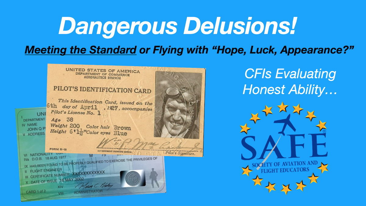 In aviation, we meet people every day that carry certificates and endorsements that should guarantee a certain level of knowledge and performance. Unfortunately, this is often not entirely true. In our modern society, hope, luck and trust in outward appearance are the norm. But beyond the surface facade, facts often reveal that people are really renting that fancy car (or girlfriend) and their amazing house is way behind on payments (or owned by dad). Most people in our modern society are not exactly what they pretend to be (or think they are). Dishonest presentation may be intentional but sometimes people are unaware of their deception and are fooling themselves as well.