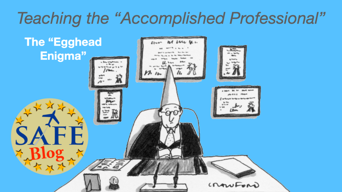 For the aviation educator, there is an additional problem here; highly intelligent people are usually the very *worst* students since they may never have experienced struggle or setback during their climb to success. My personally coded term for this problem is the “egghead enigma;” smart, accomplished people who inappropriately import a sense of competence in flying despite obvious ineptitude.