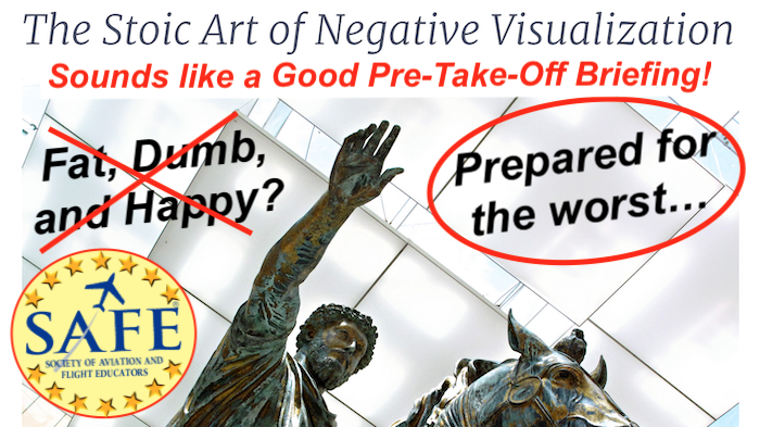 The best antidote for this misplaced optimism might be the ancient Greek Stoic Philosophy and the process of negative visualization – they call it the “premeditation of evils”. Used by warriors marching into battle, this approach is modeled nicely in a good pre-takeoff briefing. The idea is to realistically visualize and prepare for all the possible terrible outcomes before we go flying (instead of wearing the rose-colored glasses); “On the take-off before rotation, if I have any problem – fire, loss of control, or any surprising noise or malfunction – I will reduce the power, maintain the centerline and stop” Adding more detail and realism is even better; “if an engine fails before rotation, I will reduce power and stay on the runway…” and creates caution and readiness for action. This process requires us to be totally present, fully aware – what shooters call “condition yellow“. Surely this is not a rosy, happy picture, but it is not intended to be. A stoic is realistically placing all the risks on the table for an honest evaluation. Too much optimism is can easily harm us.