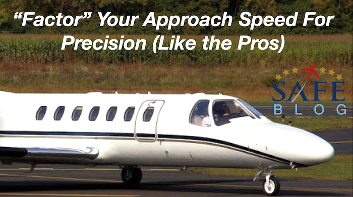 Every professional pilot is required to factor their final approach airspeed on every approach for safety. (One of our jets is based at a 3400′ runway). Unfortunately, very few pilots in training (and even CFIs) are capable of executing this very basic calculation. Simply take the square root of the ratio of the current weight over the max gross weight. Multiply this result times the POH (max gross) number for an accurate factored approach speed (Vref). In math terms: √(Takeoff Weight/MGW X POH number.